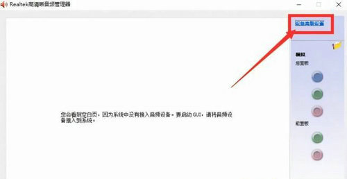 第三步:接着在高清晰音频管理器窗口中,鼠标点击右上方的【设置高级设置】按钮,如下图所示。