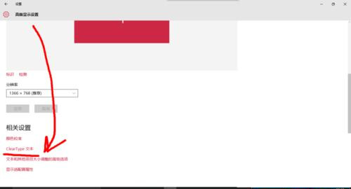 3、接着点击“高级显示设置”中的“cleartype文本”,如下图所示。