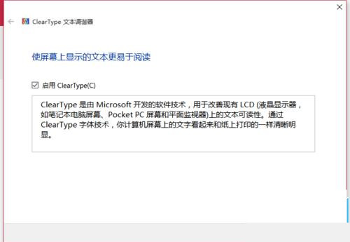 4、最后勾选“启用cleartype”,点击下一步即可,如下图所示。