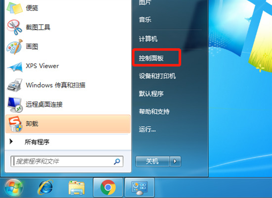 1、首先打开开始菜单,找到并打开控制面板,如下图所示。