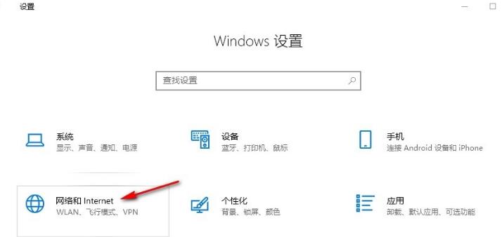 2、进入Windows设置页面之后,在该页面中点击打开“网络和Internet”选项,如下图所示。
