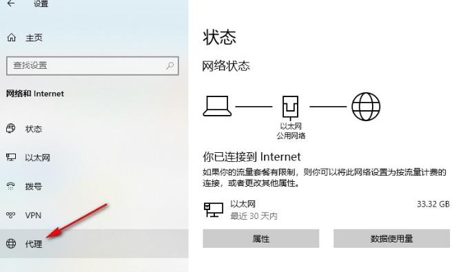3、进入网络和Internet页面之后,在该页面中点击打开“代理”选项,如下图所示。