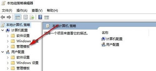 2. 打开本地组策略编辑器页面之后,在计算机配置下点击打开“管理模板”选项,如下图所示。