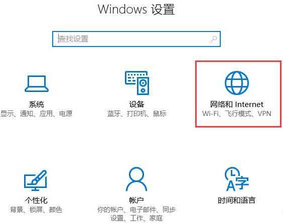 2、然后在Windows设置界面点击【网络和Internet】,如下图所示。