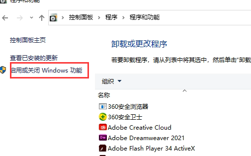 3、再点击“启用或关闭Windows功能”,如下图所示。
