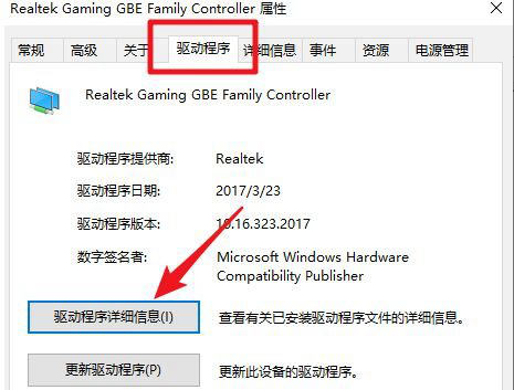5、在弹出的新窗口中,切换到“驱动程序”标签页,再点击“驱动程序详细信息”按钮即可。