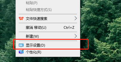 1、桌面空白处右键选择“显示设置”,如下图所示。