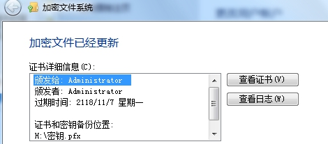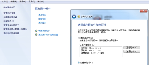 2、接下来,点击左列菜单上的【管理文件加密证书】,到加密文件系统设置阶段,如下图所示。