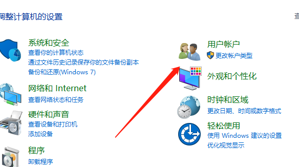 1、首先,找到并打开“控制面板”应用程序,找到“用户账户”选项并点击执行,如下图所示。