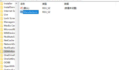 3、在右侧的空白区域,请您右击鼠标,然后选择“新建”>“字符串值”。之后,您可以给这个新添加的字符串值命名为“Manufacturer”,如下图所示。