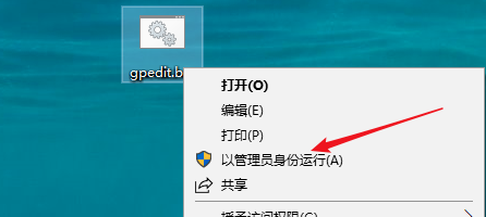 5、然后在保存的gpedit.bat上右键选择“以管理员身份运行”,dism命令需要管理员权限,所以批处理必须以管理员身份运行,如下图所示。
