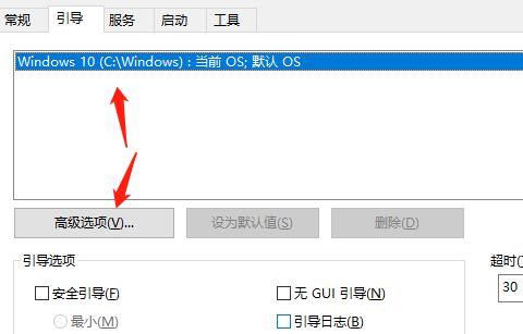 4、选中你的操作系统,然后在点击高级选项,如图所示。