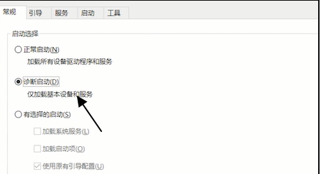 2. 然后选择“常规”-“诊断启动”,点击“应用”。