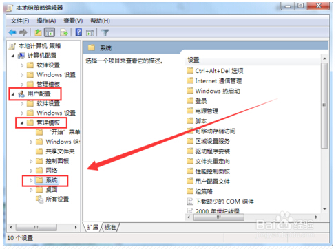 3、这时就打开了【本地组策略编辑器】窗口,然后在窗口中依次打开【用户配置】