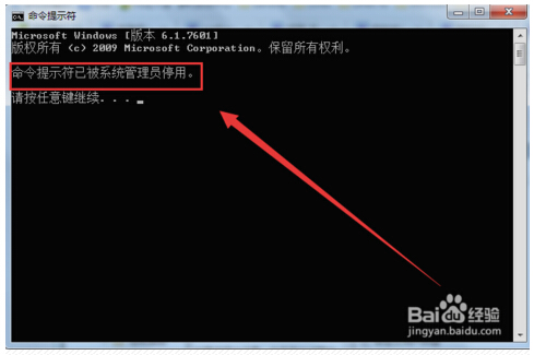 7、这时我们再从【附件】打开命令提示符时,就会发现已经被管理员停用了。