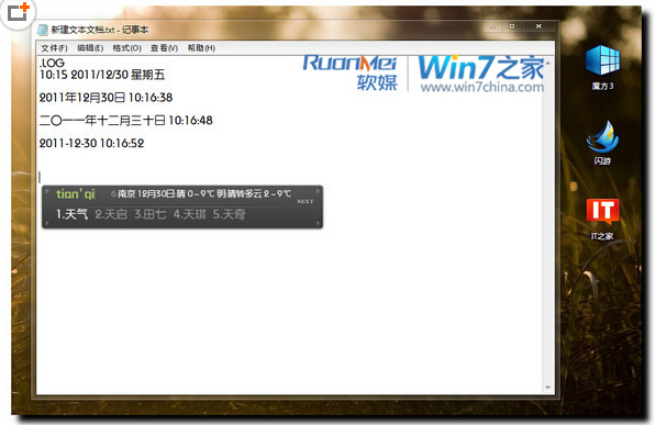 Win7技巧:win7记事本如何快速添加当前时间?其实记事本的作用是很多的,可能很多朋友都没有发现这一点,除了去除格式的效果,记事本还能充当备忘录的作用,记录下咱们每天需要做的事情,很多朋友要说了,记录下来又怎么样?如果自己忘记去点开它,那咱们还不是会忘记?那么如果咱们的记事本文件可以自动的显示当前时间呢?大家是不是可以一目了然的看清楚每一件事?下面,小编就以win7 系统为例,为大家讲解一下如何让记事本文件自动记录使用时间吧!
