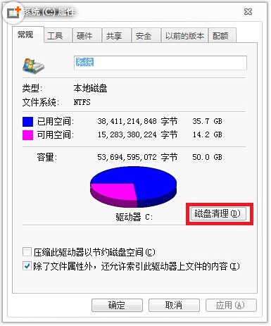 2.在C盘的属性窗口选择“磁盘清理”