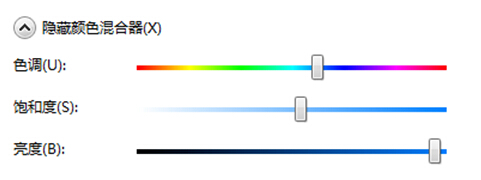 4、在“窗口颜色”设置界面中,也可通过“显示颜色混合器”更改窗口的颜色,调节色调、饱和度和亮度,用户只需拉动滑动条到自己喜欢的比例即可。