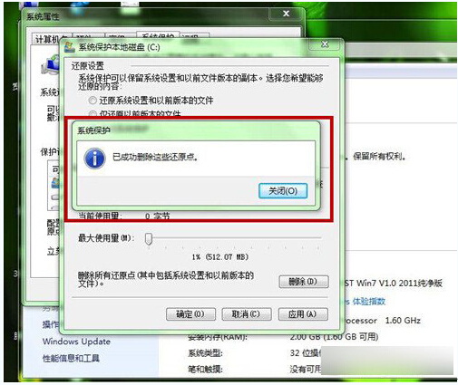 第六步、系统就会提示“已经成功删除这些还原点”。