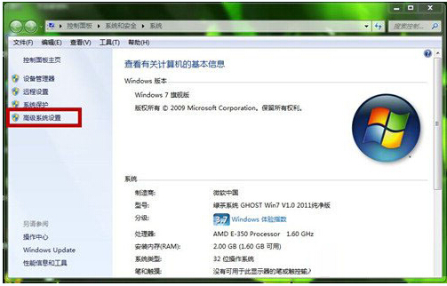 第二步、在“系统”窗口中,点击左边的“高级系统设置”。