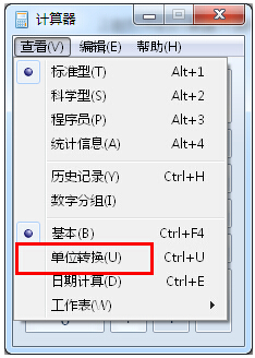 2.在打开的计算器界面中,点击“查看”选项,选择“单位转换”,如图2所示