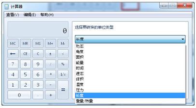 3.点击“单位转换”后,后侧会弹出一个转换的单位类型,在下拉菜单中选择“长度”。(小编以长度为例)如图3所示