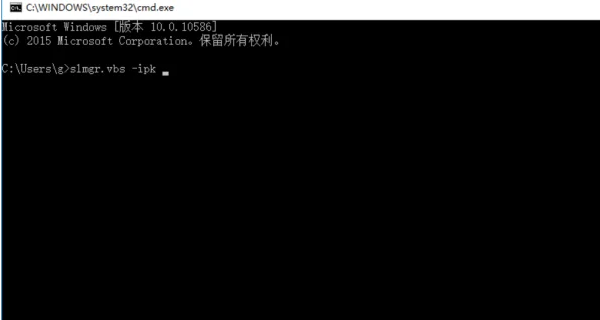 3.输入代码:slmgr.vbs-ipkXXXXX-XXXXX-XXXXX-XXXXX-XXXXX(XXXXX是激活码)。
