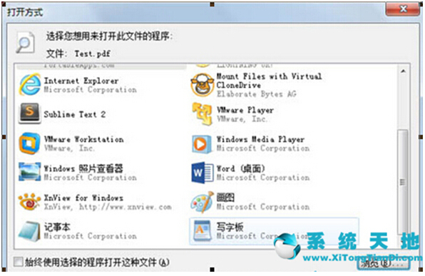 有时在Win7系统系统过程中,查看文件时常会碰到需要自定义查看方式的文件,其实这种情况的解决方法,就是选择一个应用程序来查看。但有用户遇到了,选择自定义查看方式后还是无法打开这个文件,怎么办呢?下(本文由系统天地发布)面小编整理了Win7无法使用自定义程序打开文件的解决办法,现以后缀名为 .pdf 的 PDF 文件为例给大家作出如下演示,具体操作如下: