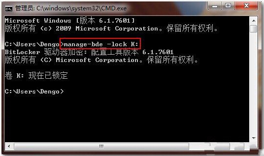 在不需重启win7系统的前提下再次锁上Bitlocker,可开启运行框以“manager-bde -lock K:”(K是代表你想上锁的分区盘符)命令去实现;