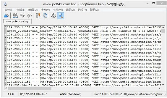 如上图,使用LogViewPro软件可以轻松打开1GB的log文件,并且打开非常快,并且不会出现乱码,这是Windows自带的记事本所无法具备的。