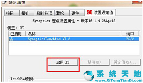 4、如果想再次开启的话,同样的方法,在打开的鼠标属性中点击“启用”按钮,启用成功后点击应用就可以了,非常简单。