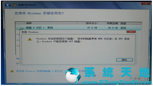Win7弹出“选中的磁盘具有MBR分区表”出状况