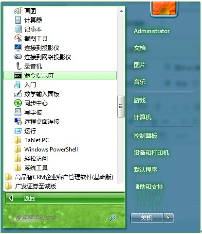 一、首先,在Win7桌面开始菜单中,依次展开“所有程序”-“附件”,然后在附件下找到“命令提示符”工具,在该工具上用鼠标右键单击一下,选择“以管理员身份运行”。