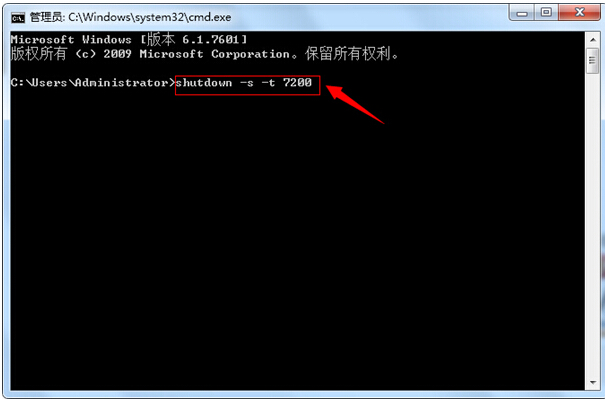 2、进入“cmd”输入“shutdown -s -t 7200”回车键。看清楚中间有三个空格,7200代表的是两个小时后自动关机,一个小时就等于3600,如果你想要在五个小时后自动关闭计算机,就要输入18000,三个半小时就输入12600;