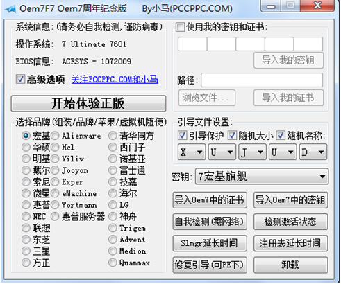 当执行完毕后只需重启计算机就已经完全激活完毕。 4:当然小马激活(OEM 7F7)还有一个高级设置,在图2中只要勾选“高级选项”,就会出现高级选项框,这时候大家也可以根据自己的要求进行设置并激活,如图所示: