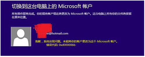 在win8电脑中,咱们很多方面的操作都需要涉及到这个Microsoft账户,例如很多用户都需要涉及到下载软件、下载程序,如果想要去win8电脑中的应用商店中进行此操作的话,就需要使用这个Microsoft账户了。不过最近却有用户发现,在自己的win8电脑中修改Microsoft账户却提示失败了,然后出现了一系列的错误代码,显示0xd00000bb,那么这样的问题,我们要如何解决呢?下面,小编就来详细的介绍一下吧!