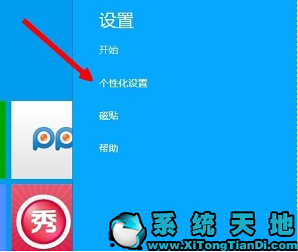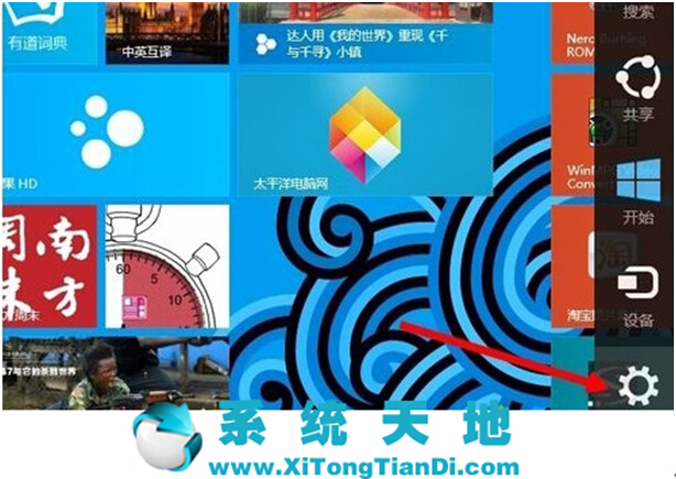 2、回到开始屏幕,metro界面,窗口键+C调出设置按钮,点击设置;