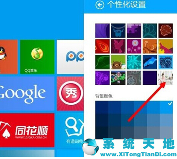 4、在弹出的个性化设置窗口,我们选择最后一张图片(也就是前面设置Win8桌面背景的图片);