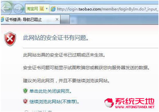 Win8.1系统下打开TAOBAO提示网站安全证书有问题 Win8.1系统下打开TAOBAO提示网站安全证书有问题由win8系统之家率先分享给大家!所谓的网站安全证书 是通过在客户端浏览器和Web服务器之间建立一条SSL安全通道保证了双方传递信息的安全性,而且用户可以通过服务器证书验证他查看 -