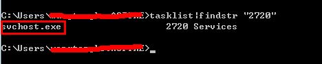 4、继续输入tasklist|findstr "2720",回车,查看是哪个进程或者程序占用了2720端口,结果是:svchost.exe