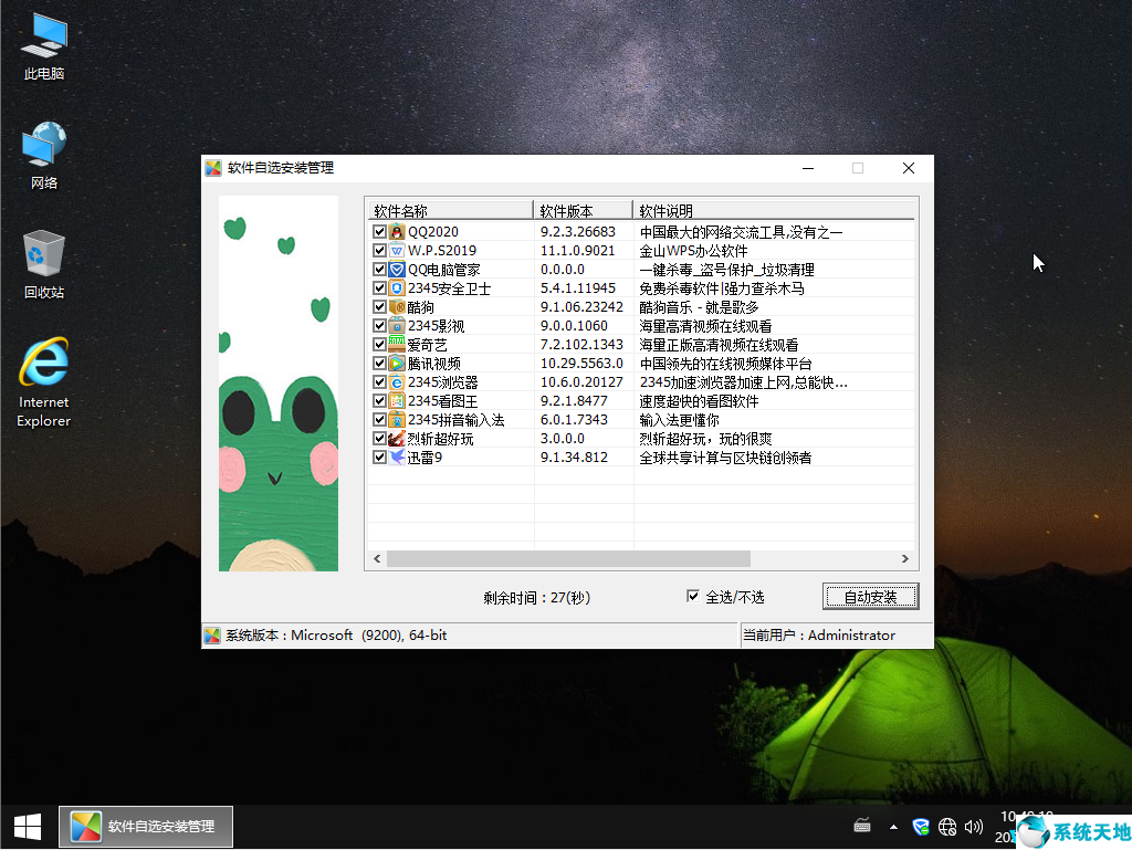 采用封装ES5执行封装过程,加载天空SKYIAR 2.6.2,最新笔记本和台式机都能正常安装;